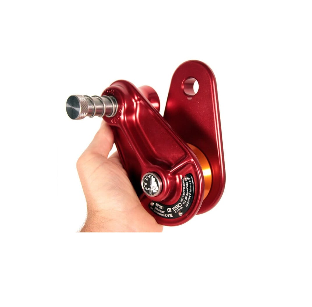 La polea ISC RP050 es una polea resistente para aparejos en arborismo, con excelente relación peso/resistencia, placas de aluminio forjado y cierre con resorte para un uso seguro y eficiente.